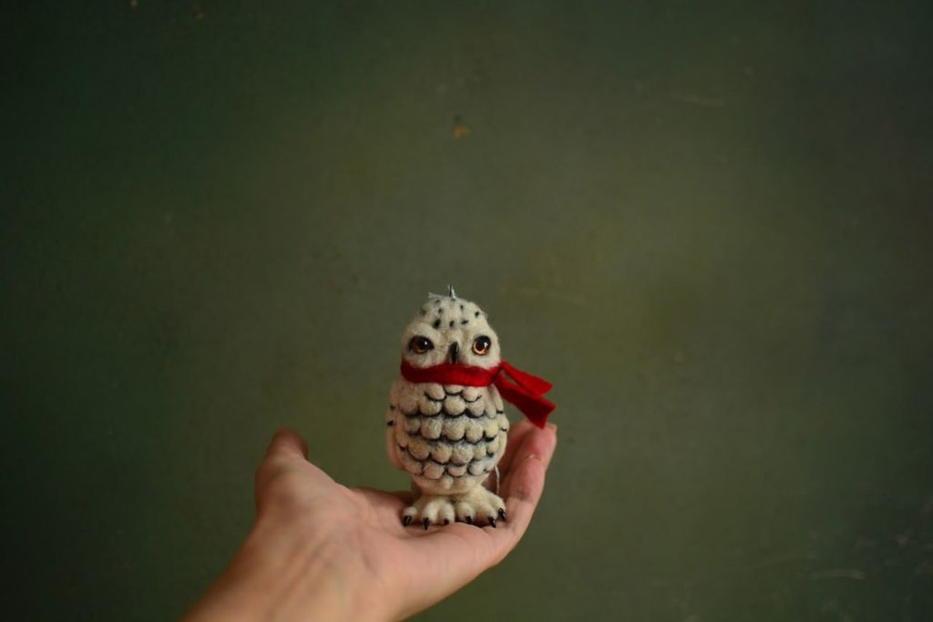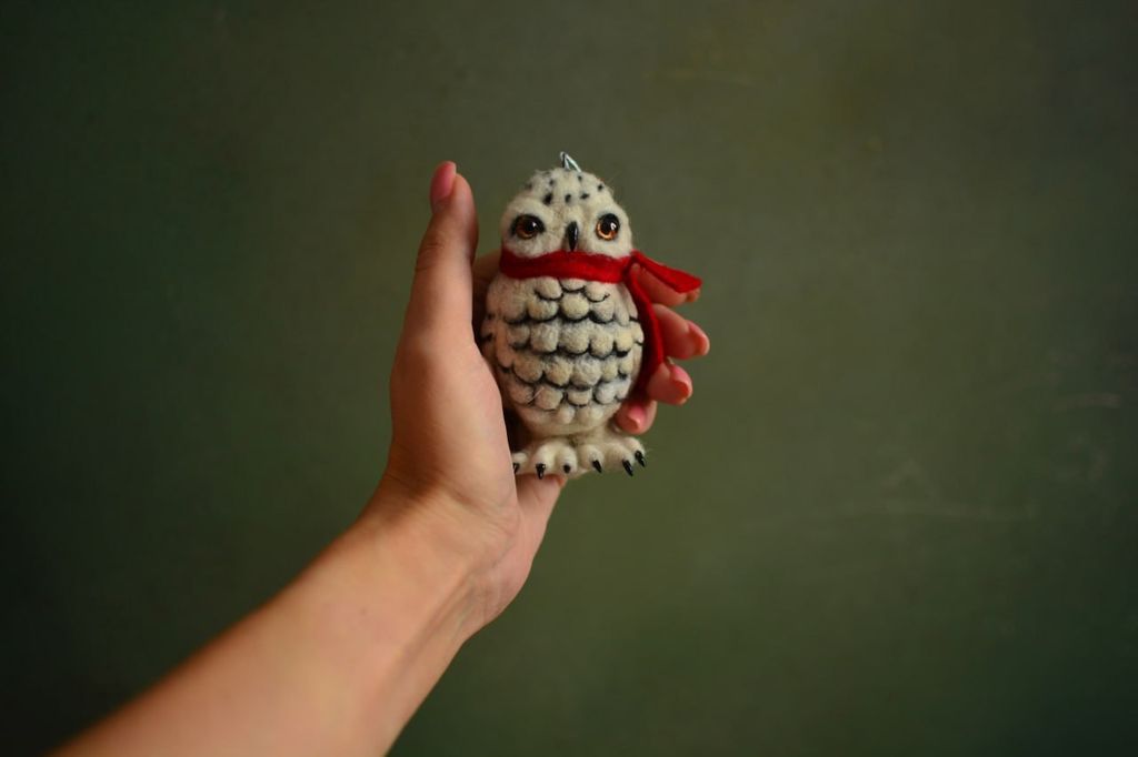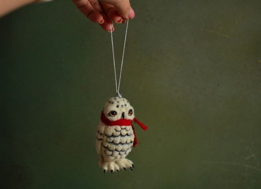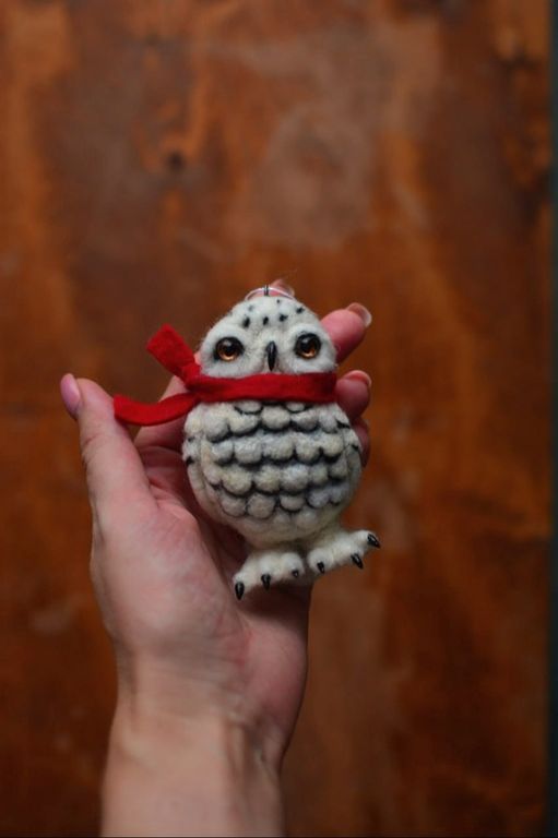 Валяная елочная игрука белая полярная сова.